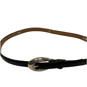 Brighton Black Croc Embossed Leather Heart Concho Belt Silver Buckle B10293 32 M