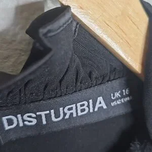Disturbia Pintuck Rufflw Black Long Sleeve Ruffle- Jumpsuit Size 12 Belt Missing