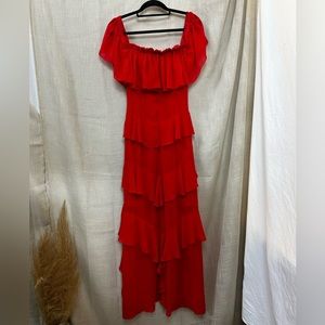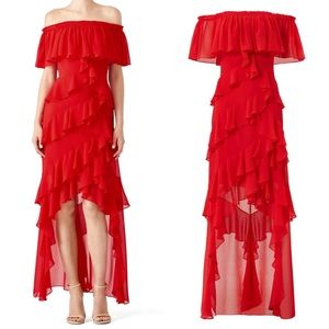 Badgley Mischka Red Off Shoulder Ruffle Gown Maxi Dress Size 2