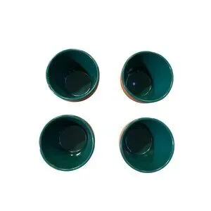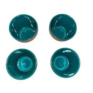 1996 Hearthstone set of 4 clay bread bakers designed for baking and serving individual loaves. Glazed interior with terracotta exterior for a rustic presentation. Perfect for entertaining, dinner parties, or farmhouse-style kitchen decor.