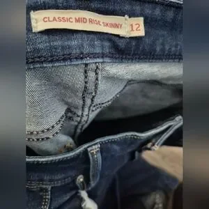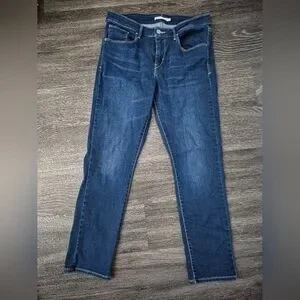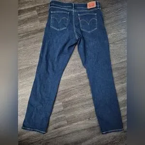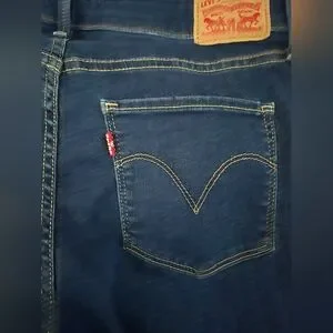 Levi's skinny jeans with a streamlined fit. Dark blue denim with subtle fading. Classic five-pocket styling and stitched accents. Versatile for casual and styled outfits. The jeans are in excellent condition