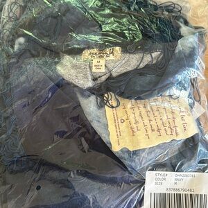 One World Blue Washed 3/4 Long Sleeve Light Knit Sweater With Scarf M
