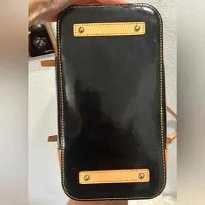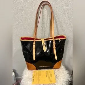 Dooney & Bourke Black Patent Tote with Tan Trim and Pink Interior w/ Reg. paper