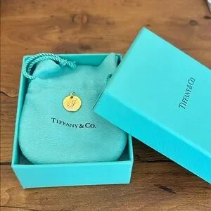 Authentic Tiffany Letter J pendant in 18k sold yellow gold. In like new condition. No scratches. Comes with original pouch and box.