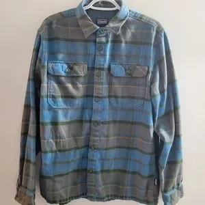 Patagonia Fjord Long Sleeve Flannel Button Up Men's Size Medium Plaid Blue Gray