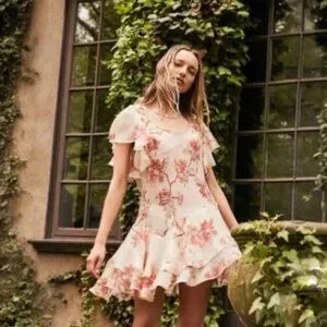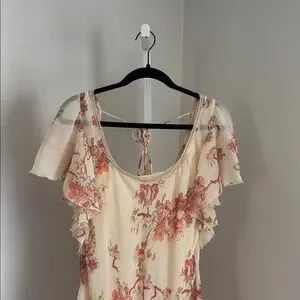Elegant sheer dress featuring a breezy, bohemian silhouette. With a floral print and ruffle sleeves. Perfect for spring, summer, bridal shower, wedding, cocktail party, beach, festival, concert, cruise, date night. and to achieve romantic looks.