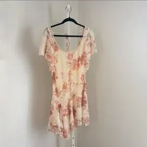 Free People Love To Love Mini Dress Flowy Floral Sheer Ruffle Dress Size Medium
