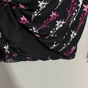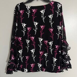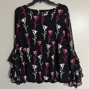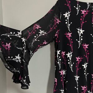 Alfani Black Pink dark Floral Bell Sleeve Blouse Medium flowy romantic dressy