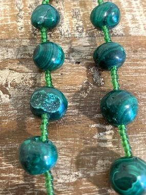 Green Malachite Stone Beaded Necklace Graduated Beads with Glass Bead Spacers