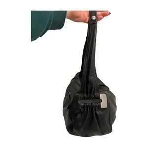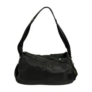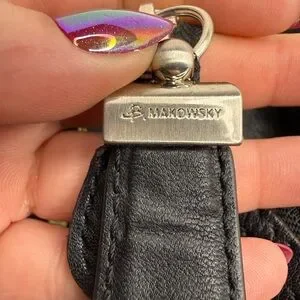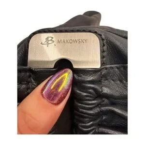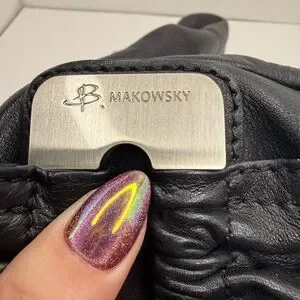 Soft, slouchy B. Makowsky black leather shoulder bag — the kind of bag that molds to your life and somehow looks better doing it 🖤