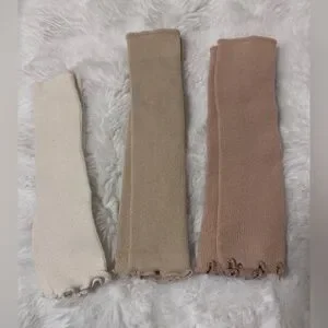 Adorable set of 3 baby leg warmers in soft neutral tones—perfect for layering outfits, keeping little legs warm, or adding a cute touch to any look!