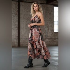 NWT Angie Clothing Boho Floral Patchwork Mixed Media Crochet Gypsy Dress