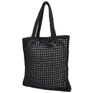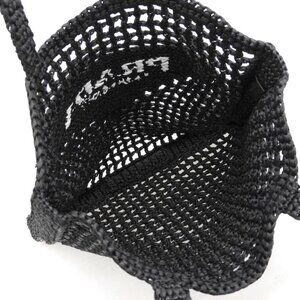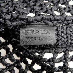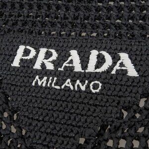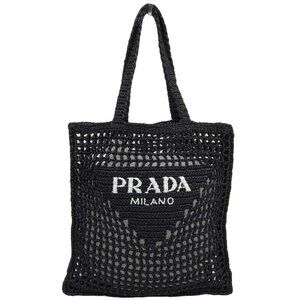 This is an authentic Prada Mesh Tote Shoulder Bag in black. The bag features an open-weave mesh construction with the iconic Prada branding prominently displayed.