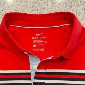 Nike Standard Fit Men’s Large Red and Navy Striped Polo Cotton
