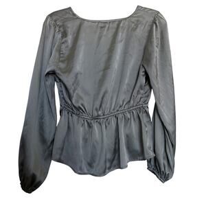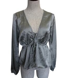 Abercrombie & Fitch Satin Blouse Tie Front Top Long Sleeve Peplum M Date Night