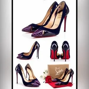 luxury heels, designer pumps, stilettos, evening heels, wedding shoes, cocktail heels, exotic leather, snakeskin detail, statement shoes, high fashion, Paris designer, authentic Louboutin, pointed toe heels, sexy heels, date night shoes