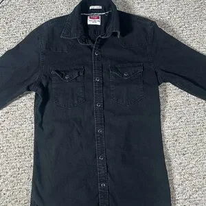 Wrangler Men’s Snap Down Long Sleeve Shirt Black Denim Size Small