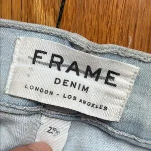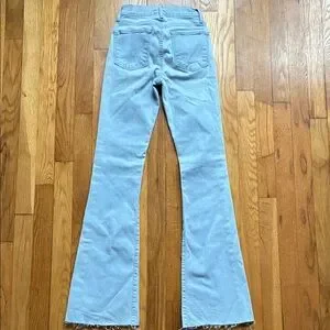 Frame Le High Flare Jeans 25 Light Wash Stretch Raw Hem Boho High Rise
