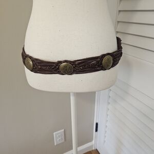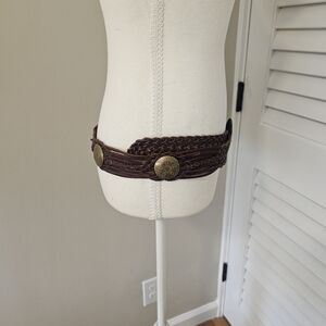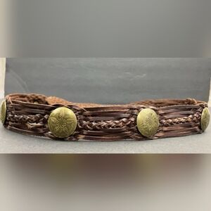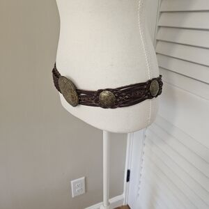 Vintage Moroccan Leather Braided Concho Belt. Size M/L.
