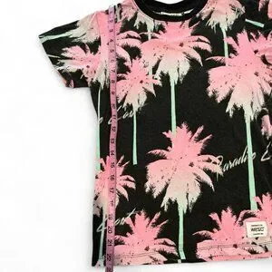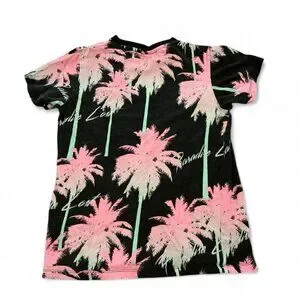 WESC Palm Tree Tee - pink and black cotton streetwear tee mens xs womens small