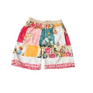 Boutique Floral Patchwork Shorts Colorful Boho Elastic Waist Drawstring Summer