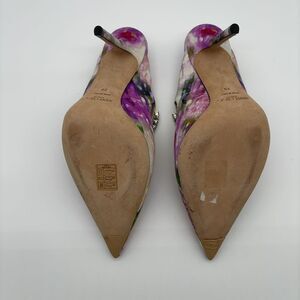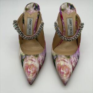 Elevate any ensemble with these exquisite Jimmy Choo Satin Floral Bing Crystal Heels, a stunning addition to your Apparel - Womens collection. These captivating heels are perfect for making a memorable entrance at special occasions or adding a touch of glamour to your evening wear. Crafted from luxurious satin, they feature a delicate floral design that exudes timeless elegance. The iconic "Bing" silhouette is enhanced with dazzling crystal embellishments, catching the light beautifully with every step. These sophisticated heels offer both unparalleled style and a comfortable fit for extended wear. Though previously cherished, this pre-owned pair has been meticulously inspected to ensure continued quality and satisfaction for its next owner.