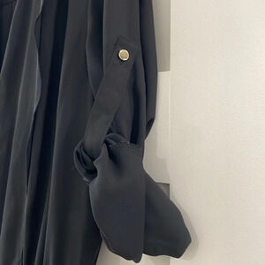 Style Tags: casual, date night, romper, shorts, button down, long sleeve, blouse, black, gold