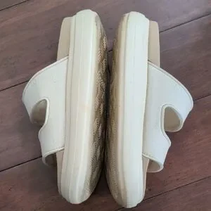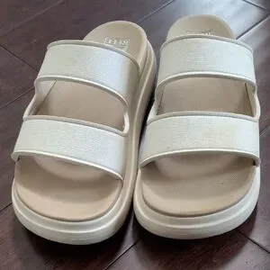 Elegant cream sandals with double straps. Perfect for any occasion.