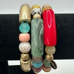 PLUNDER Chunky Casual Stretch Bracelet Set 3 Boho Multi Color Casual Stack