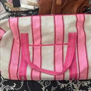 PB Teen (Pottery Barn Teen) Pink Duffle Bag, no rips or holes, but does have wear and some staining (possibly removable). Please refer to pictures