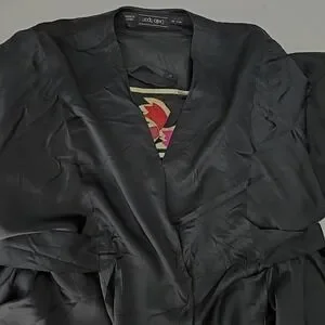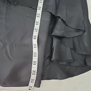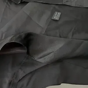 Extremely hard to find. Pictures do not do this justice. The back is somewhat straight down. The front has like a waterfall ruffle on each side. Two big hook and loop closures on front.