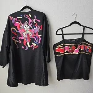 80s Silk Kimono Jacket & Top L Geisha Art To Wear 2pc RARE Colorful Della-Sport