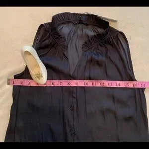 BANANA REPUBLIC deep blue gray sleeveless ruffled neck button front blou…
