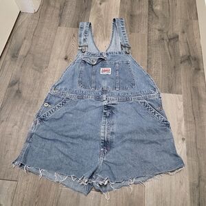 Authentic vintage Ikeda denim overall shorts made from 100% cotton for that classic sturdy feel. Features a timeless light wash, adjustable straps, front bib pocket, and relaxed fit with a raw distressed hem for that effortless Y2K / workwear vibe.