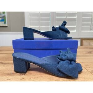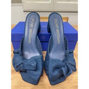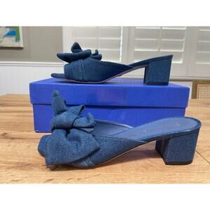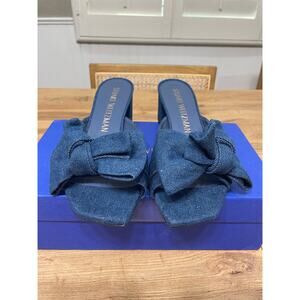Stuart Weitzman Love Knot 50 Block Slide Vintage Denim Indigo Size 9.5 NIB