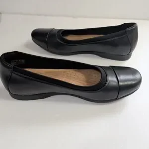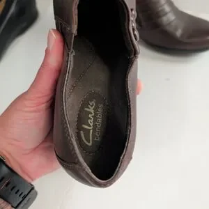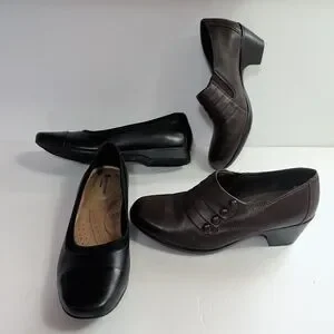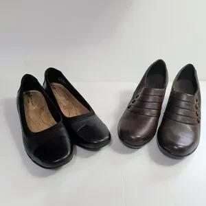 (2) Pair of Clarks,Bendables Women Brown Leather Slip 7M, Black Unstructured 7.5
