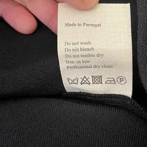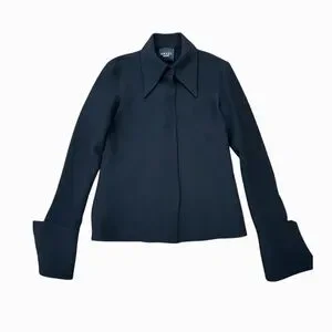 Retail $535. Made in Portugal with a premium structured blend that holds shape beautifully. A standout contemporary designer piece with a tailored, waist-length fit.