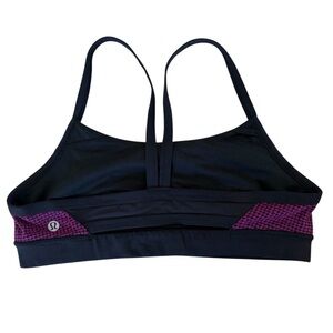 Lightweight patterned sports bra from lululemon athletica. Thin adjustable straps and a low-profile back. Black trim and supportive elastic band. Breathable fabric for workouts and everyday wear. Excellent and gently used condition. No rips, no stains.