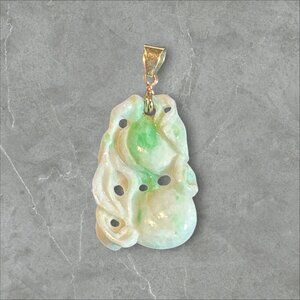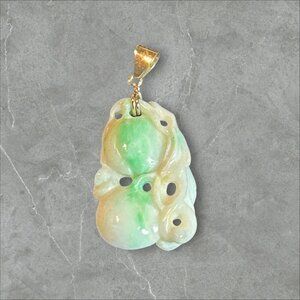 Vintage Chinese hand carved jadeite fruit pendant with a gold bezel. The bezel is unmarked . Did come off a 14K gold chain but selling this as untested.