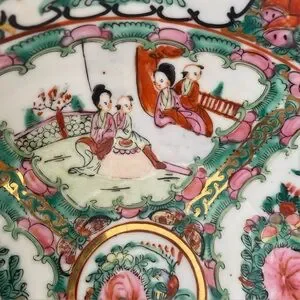 Late 20th century Rose Medallion large bowl, 9” across, Made in Japan/Hong Kong