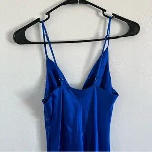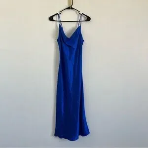tags: Silk, Slip Dress, Cowl Neck, Cobalt Blue, Cocktail, Minimalist, 90s Vintage, Y2K, Luxe, Elegant.