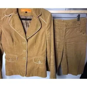 Vintage Cynthia Steffe Womens Tan Corduroy Blazer Matching Shorts Set - Size 2