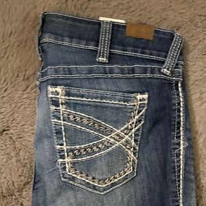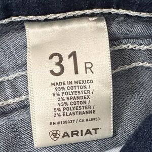Chic indigo boot cut jeans by Ariat. Ideal for everyday style. inseam length 31 inches.