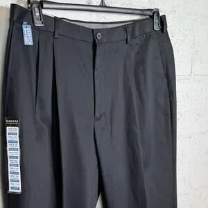 Haggar Men's Iron Free Premium Khaki Classic-Fit Pleated black 38x34 $70