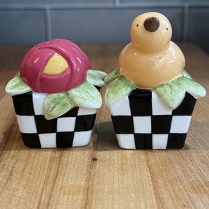 Mary Engelbreit Flowers & Chick ceramic salt and pepper shakers