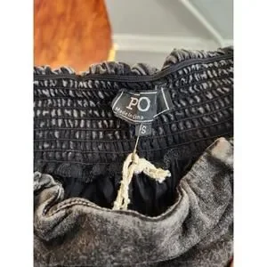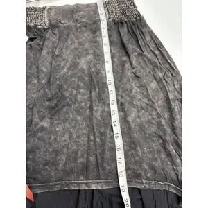 This product is a stylish Pol Women's black high-low distressed stretch skirt, perfect for a Western boho look. The skirt is made of cotton with a stretchy waist, making it comfortable and easy to wear. The long skirt length and bohemian theme make it versatile for various outfits and occasions.