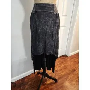 New Pol Womens Black Highlow Destressed Stretch Skirt Western Boho festival