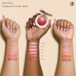 Rare Beauty’s Soft Pinch Luminous Powder Blush is a talc-free radiant blush that lights up every skin tone with seamless, silky color to keep you beaming all day. It is an easy to use hybrid of their two award winning bestsellers: Soft Pinch Liquid Blush and Positive Light Silky Touch Highlighter. Incredibly smooth and weightless, this powder blush gives a pinch-perfect flush that seems to radiate from within. Its highly pigmented base is packed with shimmering pearls for natural dimension that’s easy to blend, build, or diffuse for a softer effect (without ever looking grey or dull).