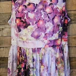 Liz Caliborne Women Sleeveless Floral Purple/pink Midi Fit/flare Dress Size 16