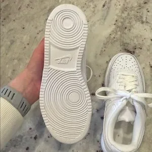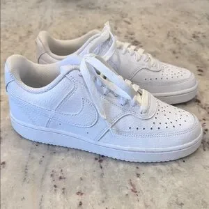 Sleek all-white Nike sneakers. Perforated design for breathability. Comfortable and stylish. Missing sole inserts. Brand new